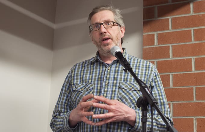 Professor Alan Weltzien introduced Davis saying, “This is a writer who works hard. He writes every day.”