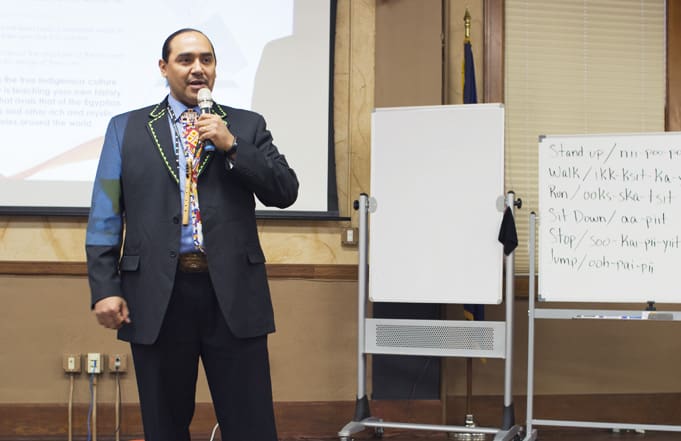 One of the Montana Western faculty, Lona Running Wolf, brought two of her students to Montana Western’s campus on Friday, December 1, 2017 to speak to returning student teachers at Senior Seminar. Lona Running Wolf was a 6th grade teacher, who was recently moved to “coach” at Napi Elementary School in Browning. She holds a Master’s Degree in Literacy and is a Nationally Certified PAX trainer (a program designed to support children’s resiliency). In her presentation, Lona described the differences between the Western (Euro) World View and the Blackfeet World View. She explained that generations of trauma have significantly disrupted Blackfeet Ways, leading to the outcomes described above. Through a Blackfeet-grounded education—one that also includes the foundation for success in the Western world, Ms. Running Wolf explained, it will be possible to rebuild ancient values, restore harmony and eventually erase the roots of poverty.
