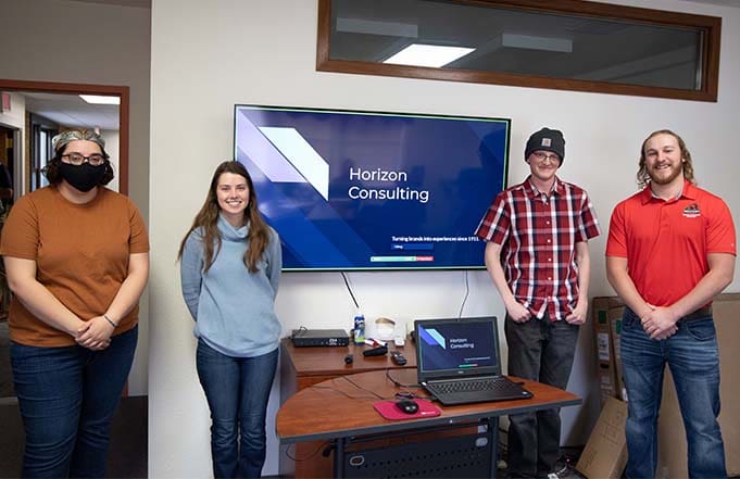 The winning team included students Dalton Lemburg, Emma Johnson, Duane Mckethen and Kimberlee Ollinger who named their team “Horizon Consulting.” Horizon Consulting presented its findings and recommendations for Razer, a global gaming and electronics manufacturing company.