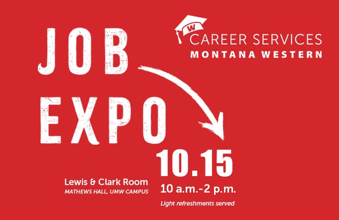 The University of Montana Western Career Services Office would like to invite all interested employers and UMW students to the 2024 Job Expo on Tuesday, October 15, from 10:00 a.m. to 2:00 p.m. in the Lewis & Clark Room located in Mathews Hall.