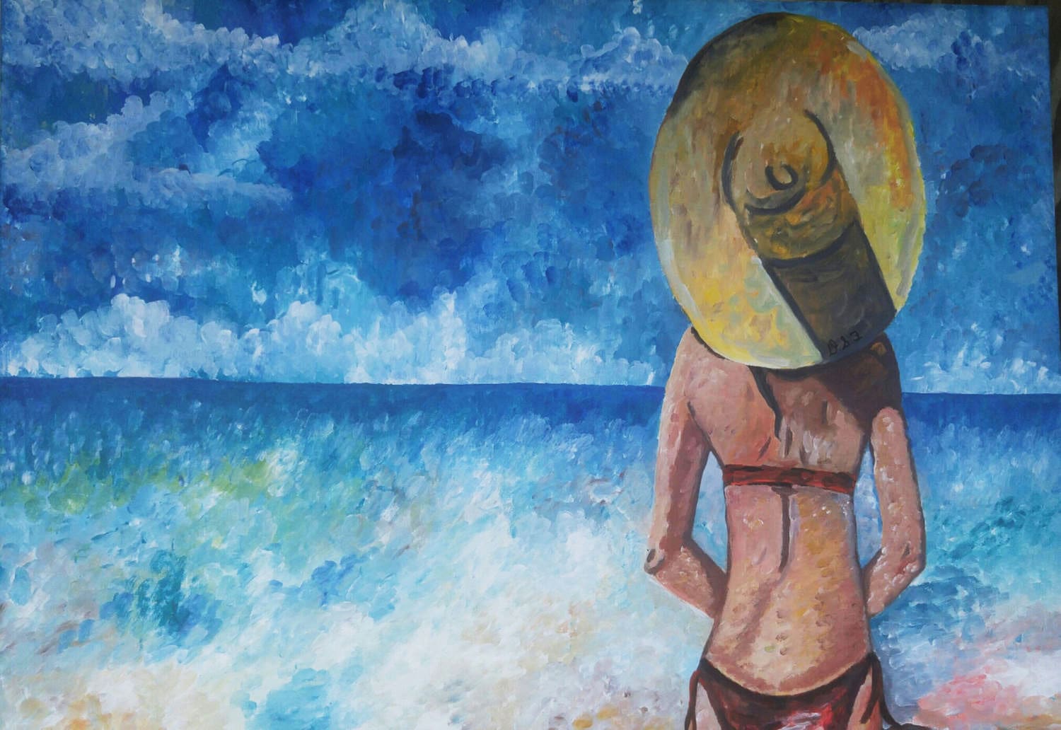 Although Claude Monet is her biggest influence as far as aesthetics are concerned, she cites George Grosz as an influence when it comes to choosing subject matter. In addition to her beautiful paintings of the Puerto Rican oceanside, she also has works which tackle issues like mental health and political corruption.