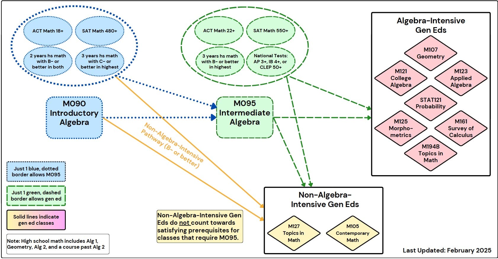 To enter M095: Intermediate Algebra or a Non-Algebra Intensive Gen Ed (M105 or M127), you need at least one of the following: