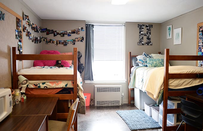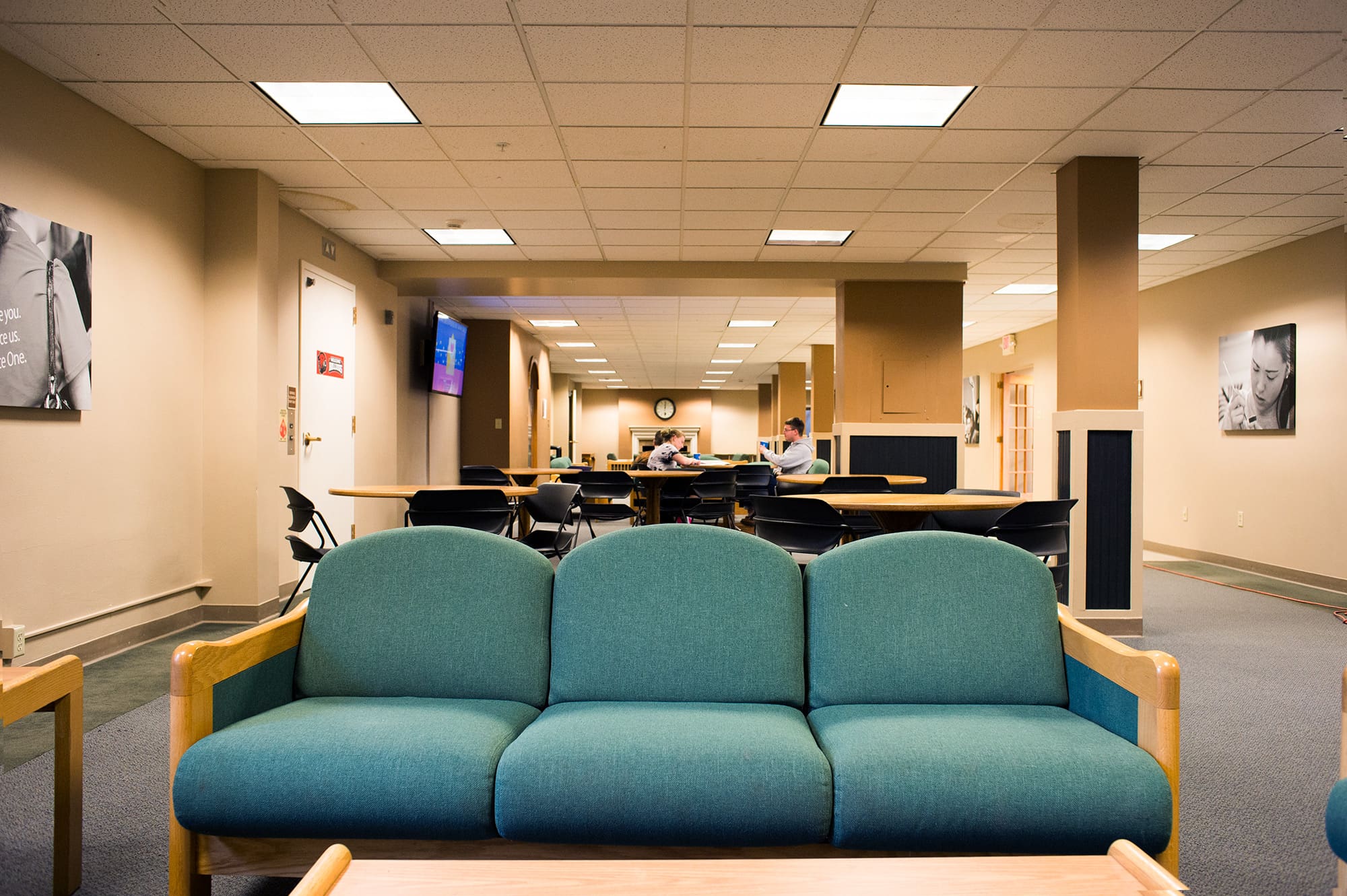Built in 1920, Mathews is the second oldest building on campus. It is connected to the campus dining facility and a large percentage of the rooms have private sinks. Each room in Mathews Hall has its own unique shape and size. There are also a few rooms with private bathrooms, usually assigned to upper-classmen. All floors in Mathews Hall are co-ed, and the third floor is reserved for upper-classmen. Each floor has gender neutral showers and bathrooms that are individual, private and secure. Located on the first floor, there is a student kitchen, the custodial supervisor office, a student common area with a movie room attached, and the student conference room. Laundry facilities can be found on the basement floor and the second floor.