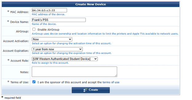 Navigate to settings on your console and locate your WIRELESS MAC address.  (i.e. 84:34:b3:c3:33)