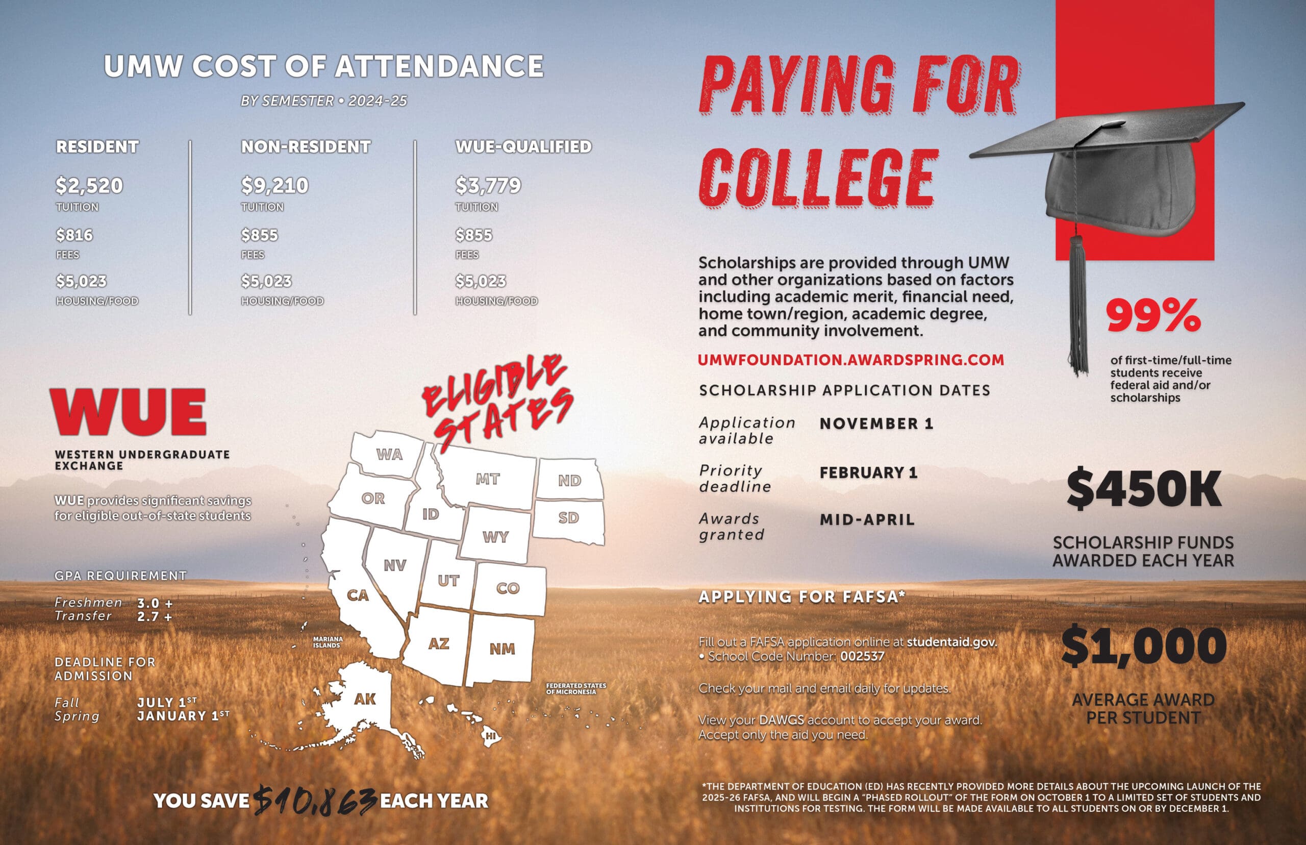 Montana Western has the lowest cost tuition in the state of Montana. Our block learning course delivery schedule allows students to thrive during their college experience and aligns with many employment options in the community, making college with minimal student loan debt a real possibility. Most UMW-bound students qualify for scholarships, further lowering the cost of attendance.